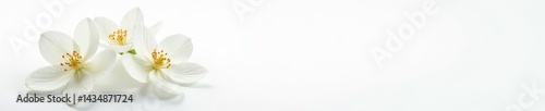 Three pristine white blossoms, delicate petals, pure white backdrop, simplicity, three