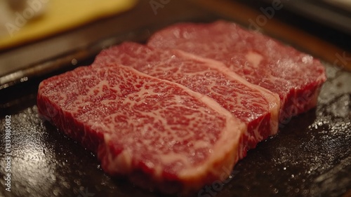 Three Raw Marbled Beef Steaks Ready For Cooking