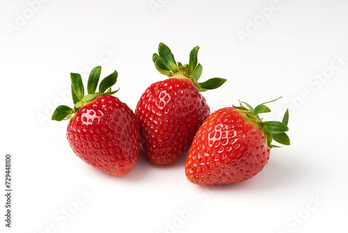 Three red strawberries on a white background