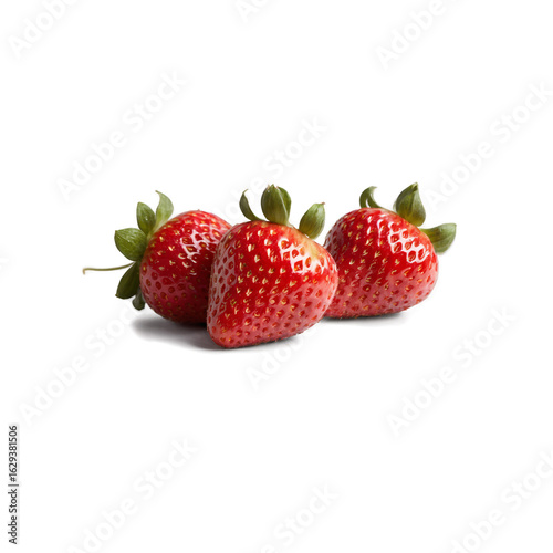 Three Ripe Strawberries. A CloseUp View of Fresh, Juicy Summer Berries on White