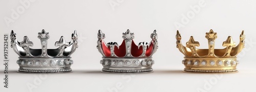 Three Royal Crowns in Silver, Red, and Gold