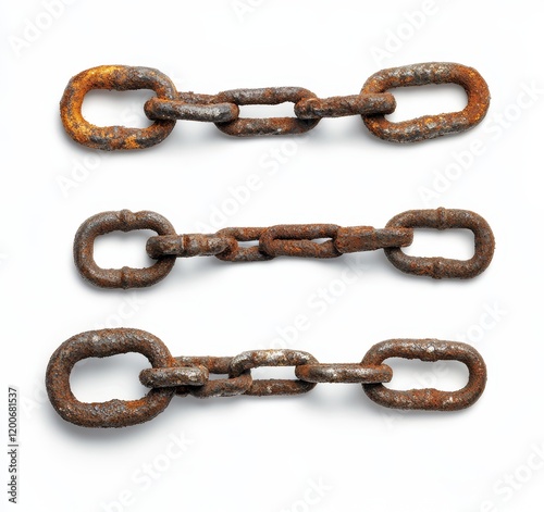 Three rusty chains isolated on white. (1)