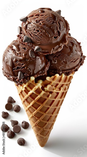 Three Scoops of Chocolate Ice Cream in a Waffle Cone