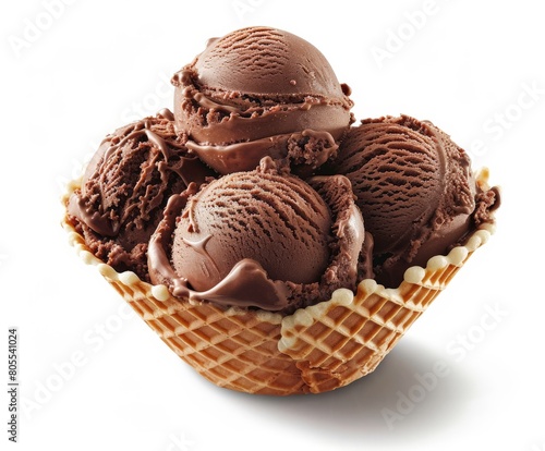 Three Scoops of Chocolate Ice Cream in a Waffle Cup