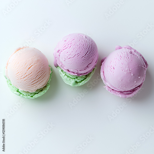 Three scoops of pastel ice cream: peach, lavender, and a hint of mint.