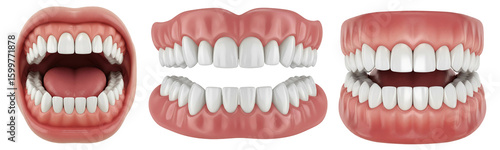 Three sets of realistic human teeth isolated on transparent background