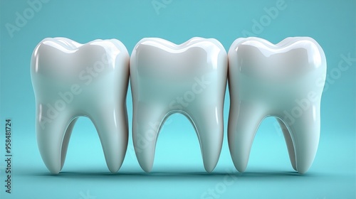 Three shiny white teeth contrast with a vibrant turquoise background, emphasizing the importance of dental health