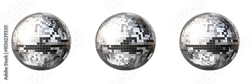 Three Silver Disco Balls Isolated on White Background