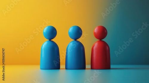 Three simple figurines in blue and red stand against a gradient background, symbolizing diversity and collaboration.