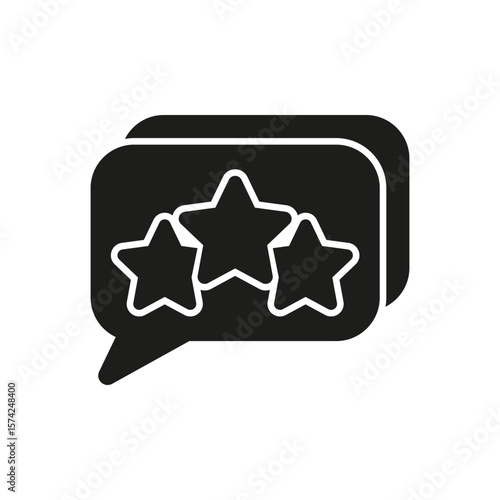 Three Stars In Speech Bubble Solid Icon. Customer Feedback And Review Communication Silhouette Symbol. Rating And Testimonial Illustration. Isolated Vector Illustration