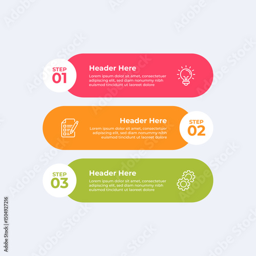 Three step process with icons for each step.