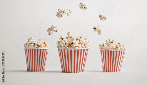 Three Striped Cups Overflowing with Popcorn Movie Night Snack Delight