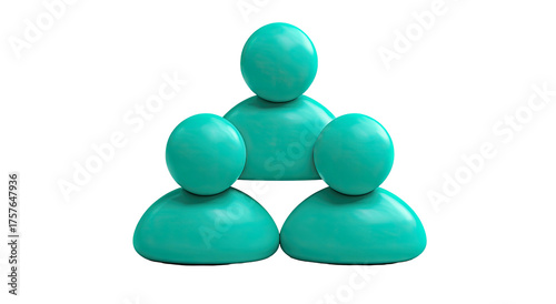 Three teal, rounded, 3D figures arranged in a triangle formation against a black background