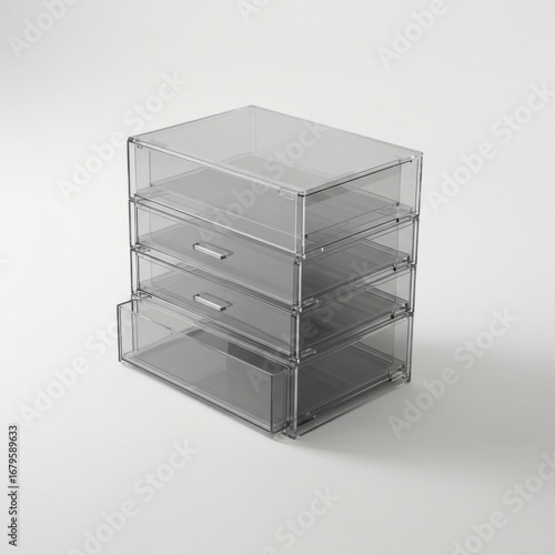 Three Tier Transparent Plastic Drawer Organizer on White Background for Storage