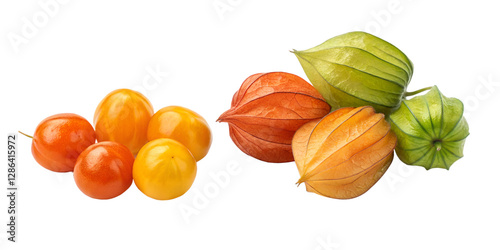 Three Variations of Colorful Physalis Fruits on White for Natural Beauty, PNG Transparent