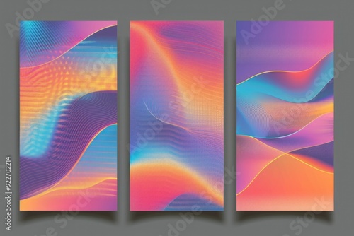 Three vertical banners featuring abstract geometric shapes and modern design