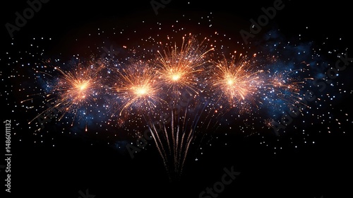 Three vibrant fireworks bursts against a black background.