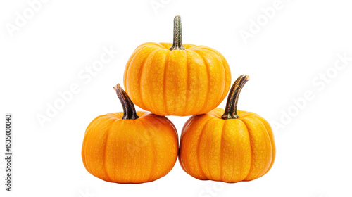 Three Vibrant Orange Pumpkins Stacked Together on a Transparent Background for Autumn Harvest Decor