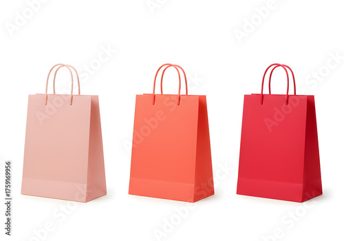 Three vibrant shopping bags arranged on a white background, ideal for showcasing retail therapy and promotions.