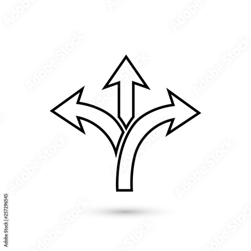 Three way direction arrow in flat style. Vector illustration. Road direction icon isolated