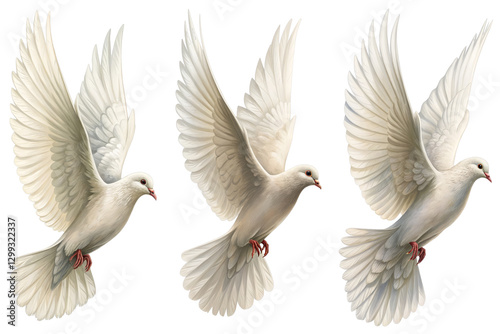 Three White Doves in Flight, Realistic Illustration, Isolated on Transparent Background, PNG, Dove, Peace, Bird