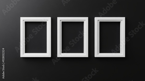 Three white picture frames on black background