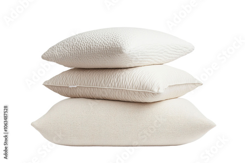 Three white pillows stacked on top of each other . on transparent background.