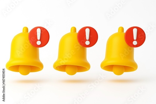 Three yellow notification bells with red alert icons on a white background