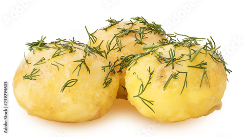 Three young boiled potatoes in dill