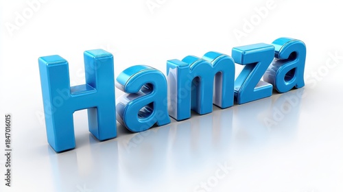 Three-Dimensional Hamza Name Design on a Clean White Canvas