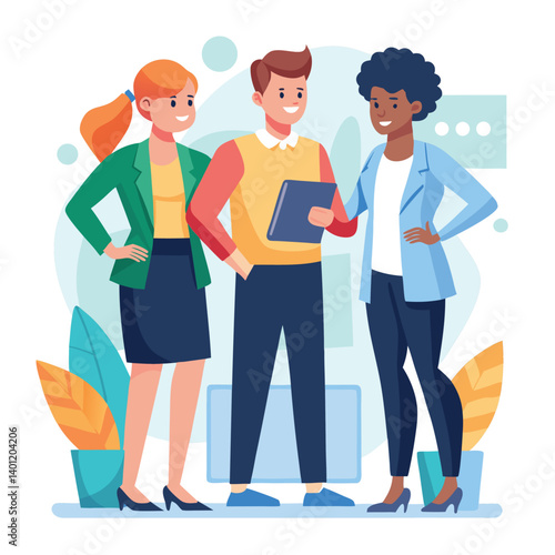 three-diverse-business-partners-standing-and-discus vector image on white background