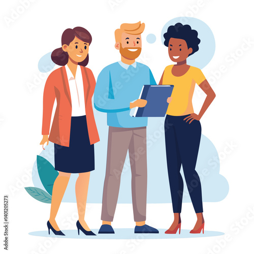 three-diverse-business-partners-standing-and-discus vector image on white background