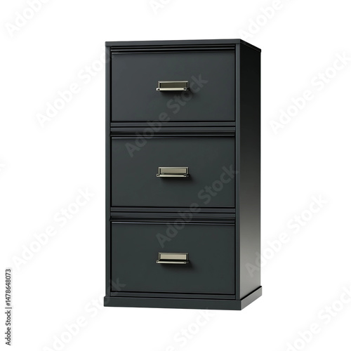 Three-drawer cabinet in dark wood. It has silver handles. This is a sturdy piece of furniture that can help to organize any space.