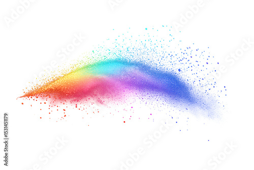 Thrown multicolored paint particles on transparent background. Nebula. Colored smoke effect. Design element.