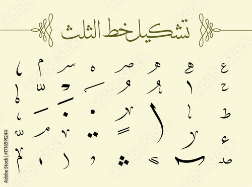 Thulth formation icons of arabic calligraphy to be used for illustrative editorial content
