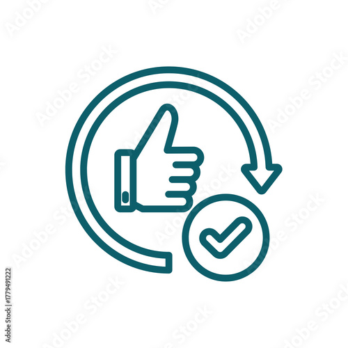 Thumbs up icon with checkmark and circular arrow isolated on transparent background