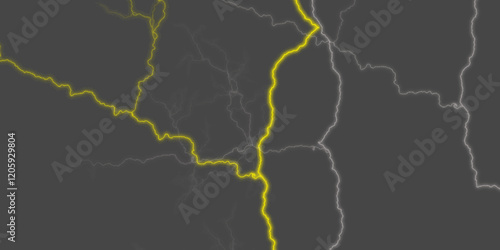 Thunder Stock Image In Black Background. Massive lightning bolt with branches isolated on black background.