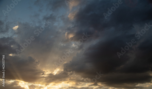 Thunderclouds in the sky at sunset.