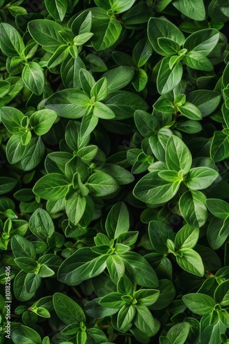 Thyme texture background, thymus leaf banner, Thymus vulgaris pattern, fresh herbal leaves banner