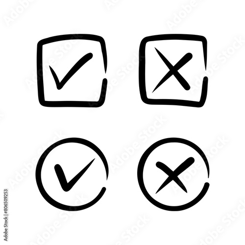 Tick and cross signs. Checkmark OK and X icons.
