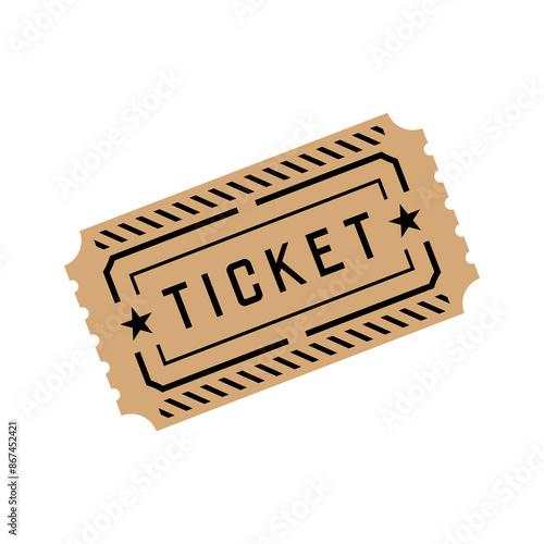 Ticket icon. Symbol of payment or cash register, sports match or cinema. Document for travel on public transport. Attribute of a cinema, theater or concert.