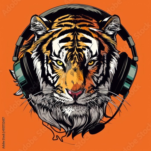 tiger head listen music with headphones