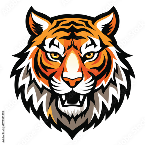 Tiger Head Logo Vector Illustration Isolated On White Background Fierce Animal Graphic Design Art