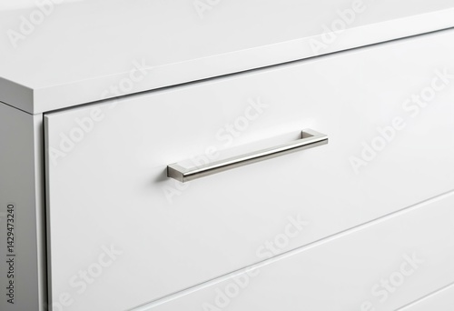 Tight frame on cabinet drawer pull and clean white panel