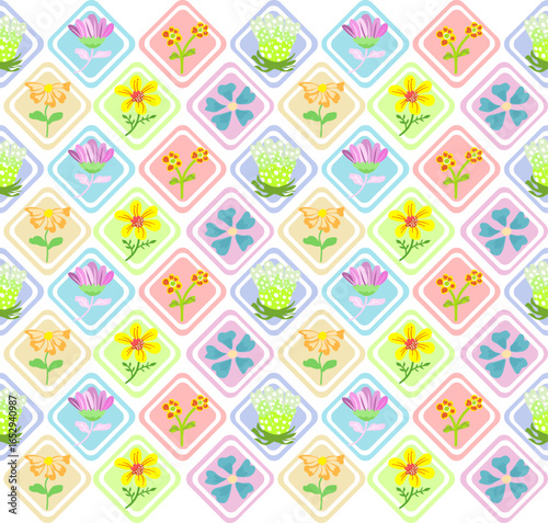 Tiled floral background, floral tablecloth pattern, curtains, minimalist, cute and bright, used for pattern design.