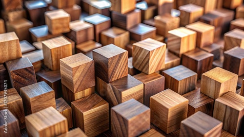 Tilt-Shift Brown Wooden Cubes Background, Miniature Effect