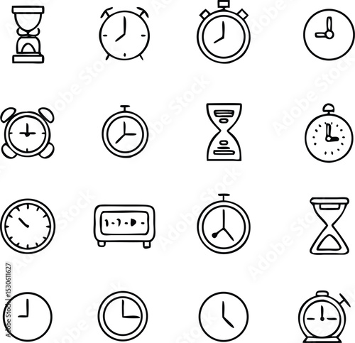 Time and clock icon set in line style. isolated on white, vector Illustration