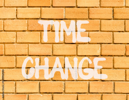 Time change symbol. Concept word Time change on beautiful brown brick wall. Beautiful brown brick wall background. Brick wall. Business time change concept. Copy space.