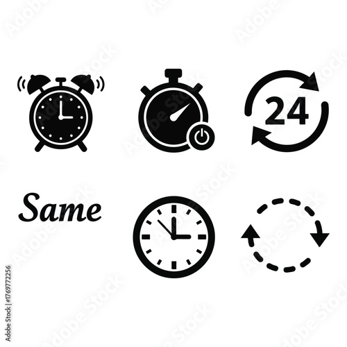 Time clock stopwatch 24 hour cycle round arrow refresh symbol vector