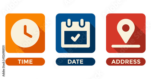 Time, date and address icon set. Vector illustrations can be used for web, mobile, ui